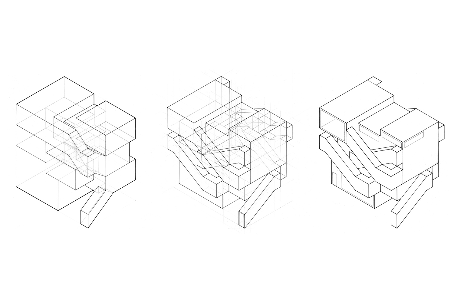 ✱ The first architecture design project I executed after leaving Morgan Stanley. It was completed during the summer 2013 portfolio prep course at the Harvard GSD. To be clear, it's not offered as an example of mind-breaking architecture. However, as sophomoric as this project is, my ongoing interest in generative schemata and combinatorial primitives is already present.