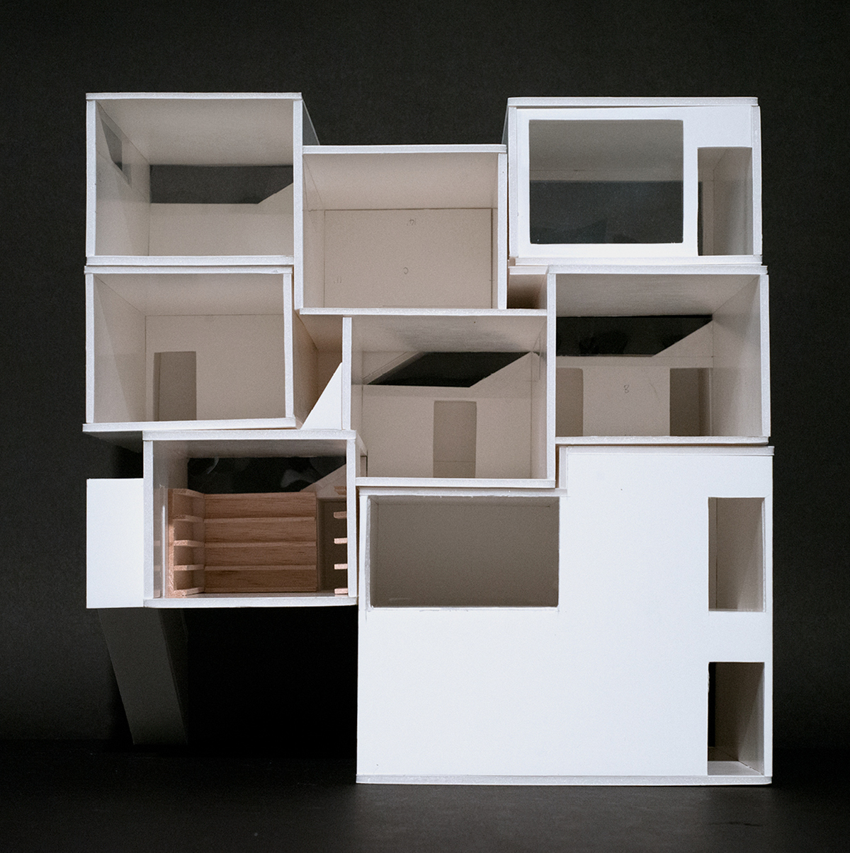 A speculative design for a two-client dwelling at 7 Ware Street, Cambridge MA that explores hierarchy and non-hierarchy.
