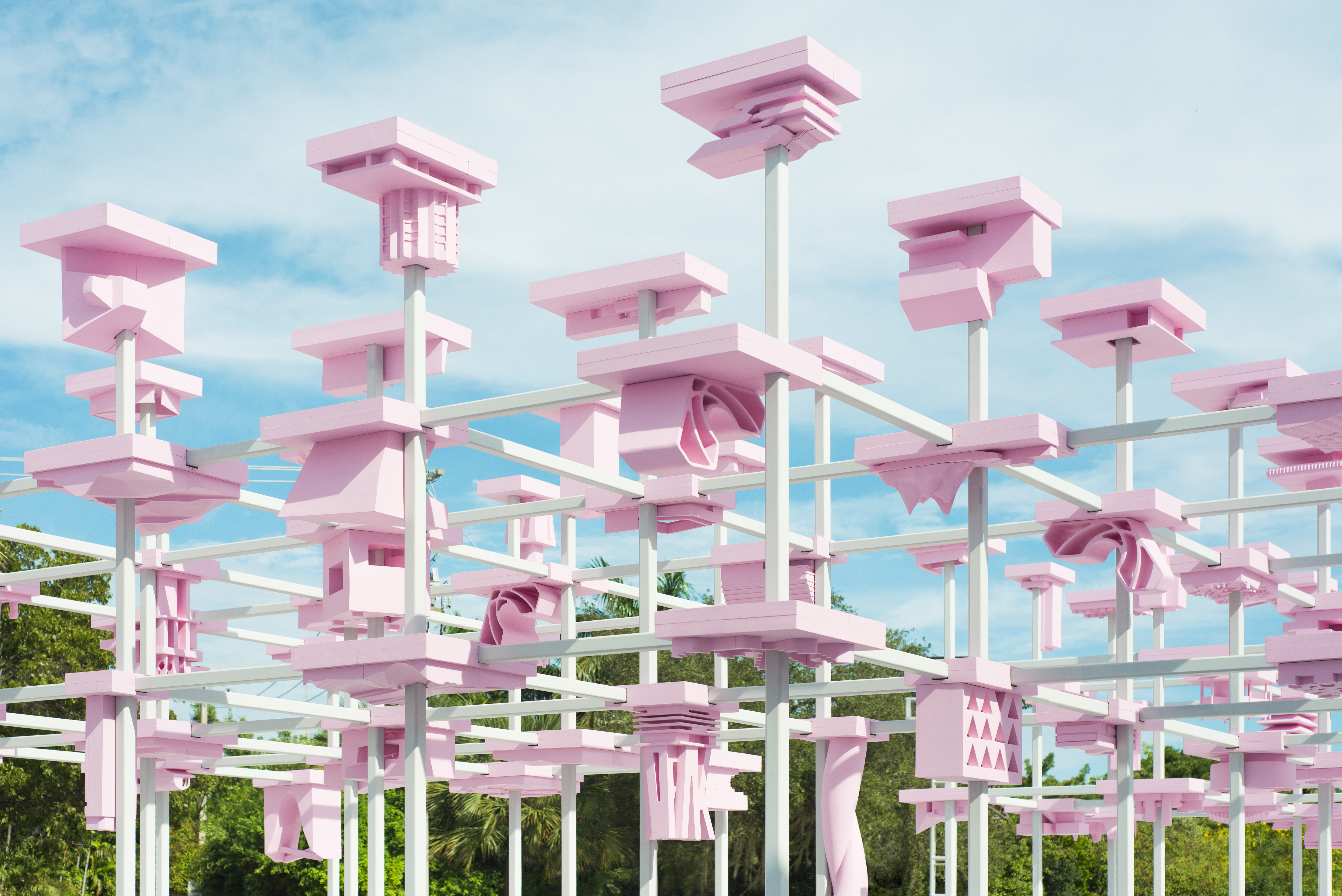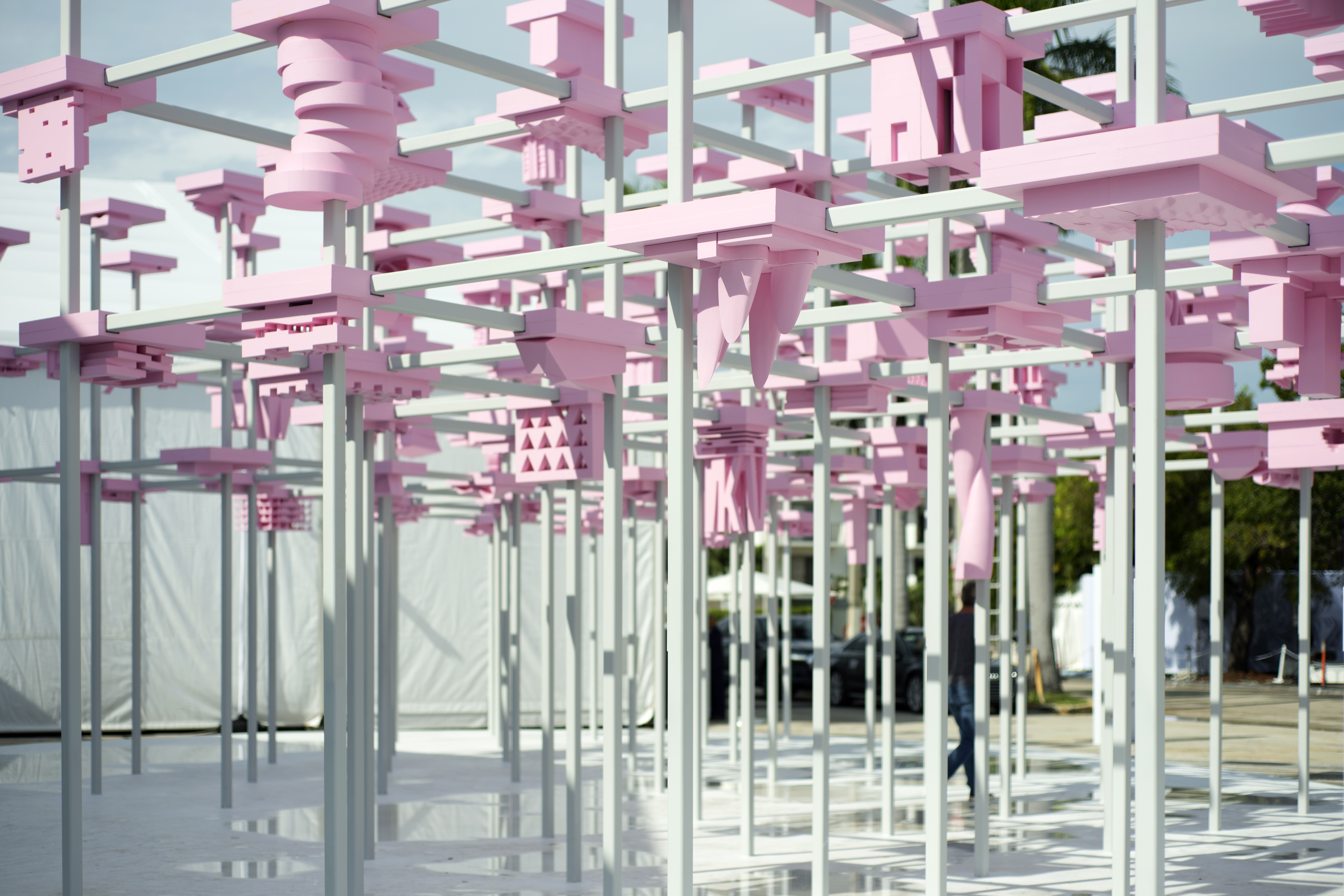 - Harvard students create pink pavilion of 200 elevated models outside Design Miami — Dezeen