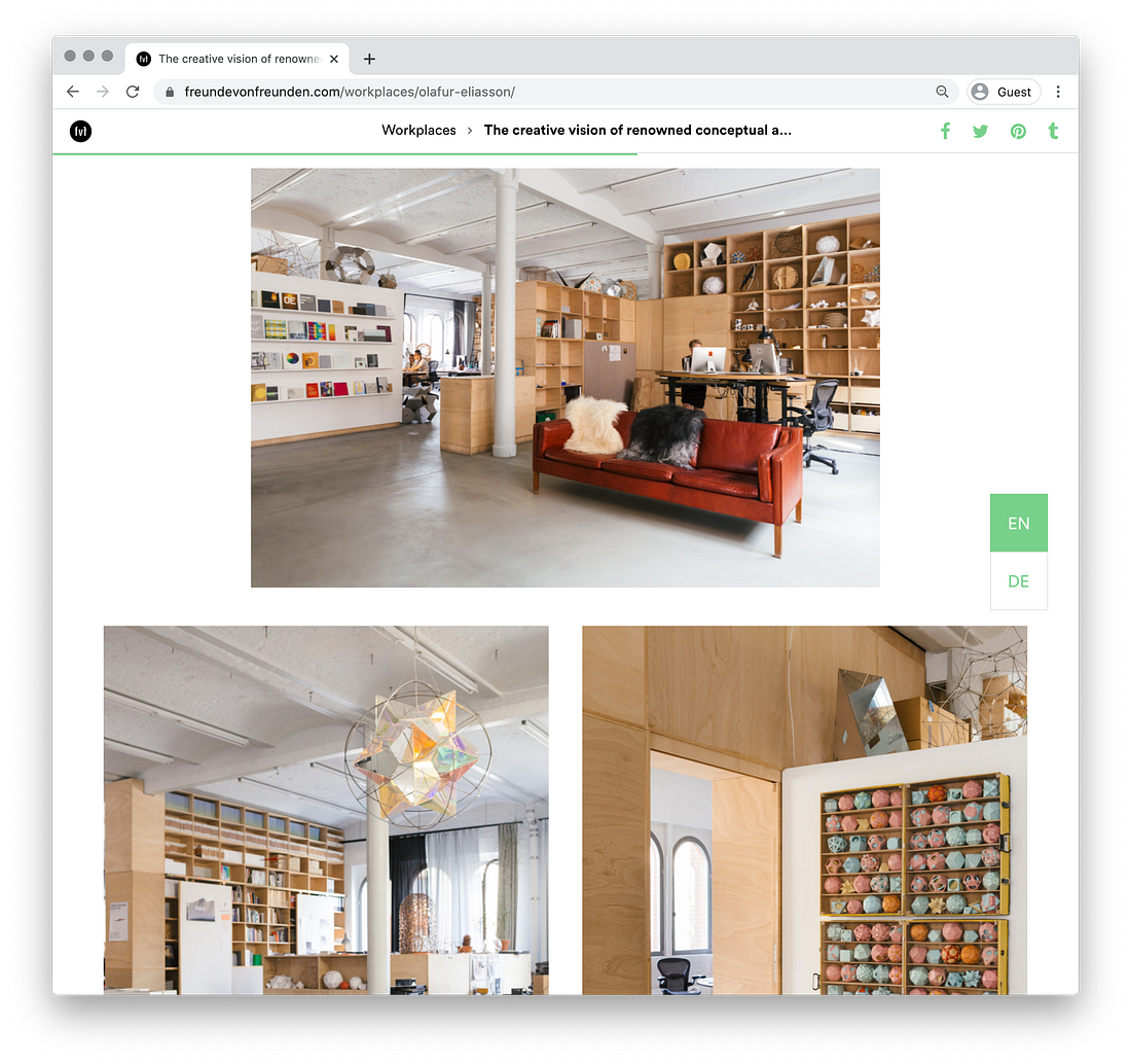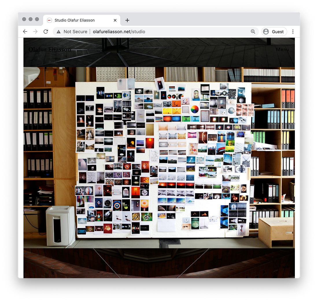 Studio Olafur Eliasson takes up most of a massive former brewery in the heart of Berlin. It needs all this space because most people in the studio make physical things. Their workflows produce a constant stream of architecture models, watercolor tests, glass samples, 3D printed geometries, book proofs, and more. It’s crazy and beautiful. This photo essay by Freunde von Freunden gives you a pretty good idea of what it’s like.